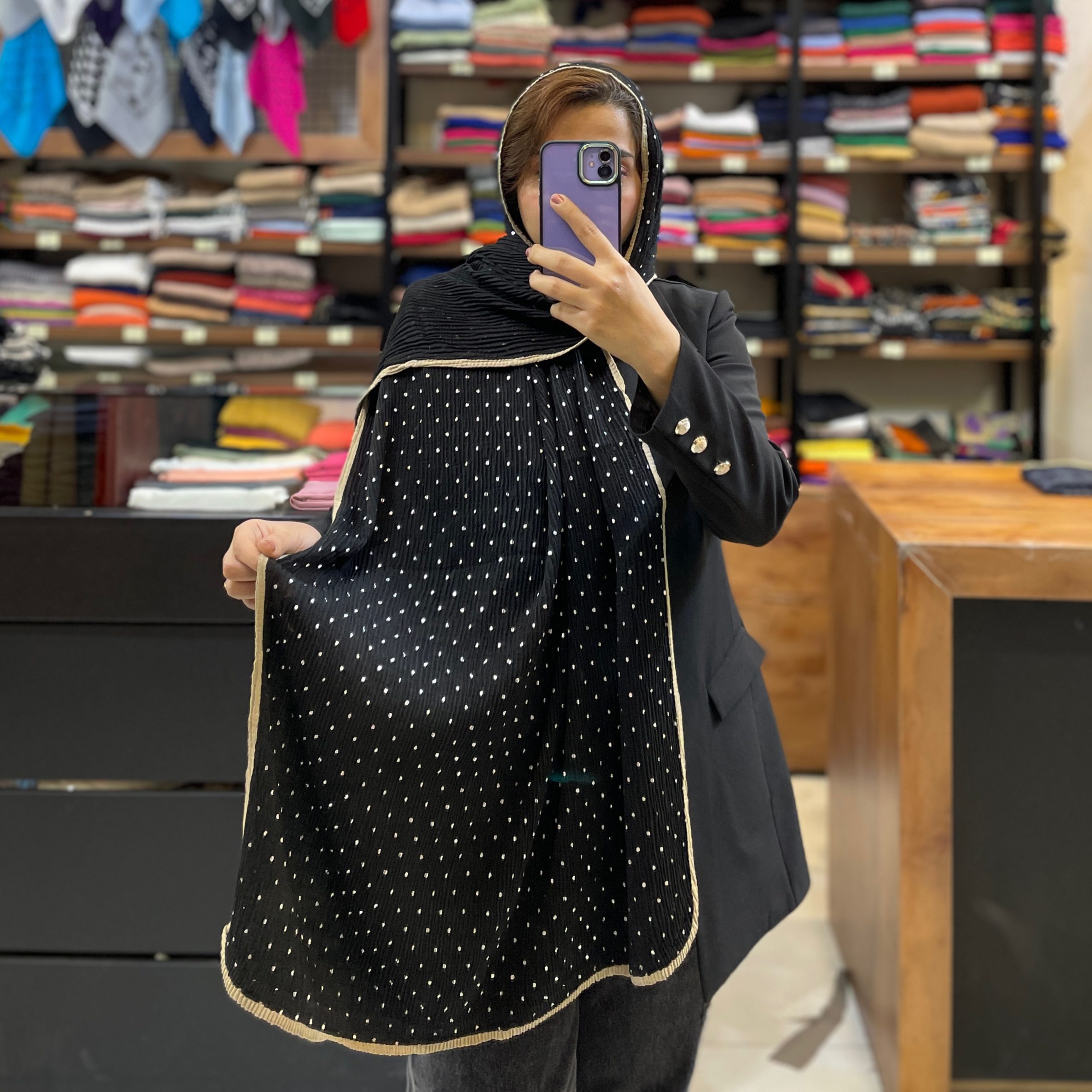 جنس: پلیسه سوپرنخ ابعاد تقریبی : 75*225 سانتیمتر توضیحات: بسیار سبک و نرم -ایستایی روی سر عالی-دو طرف دوخت-پایین ریش-بسیار