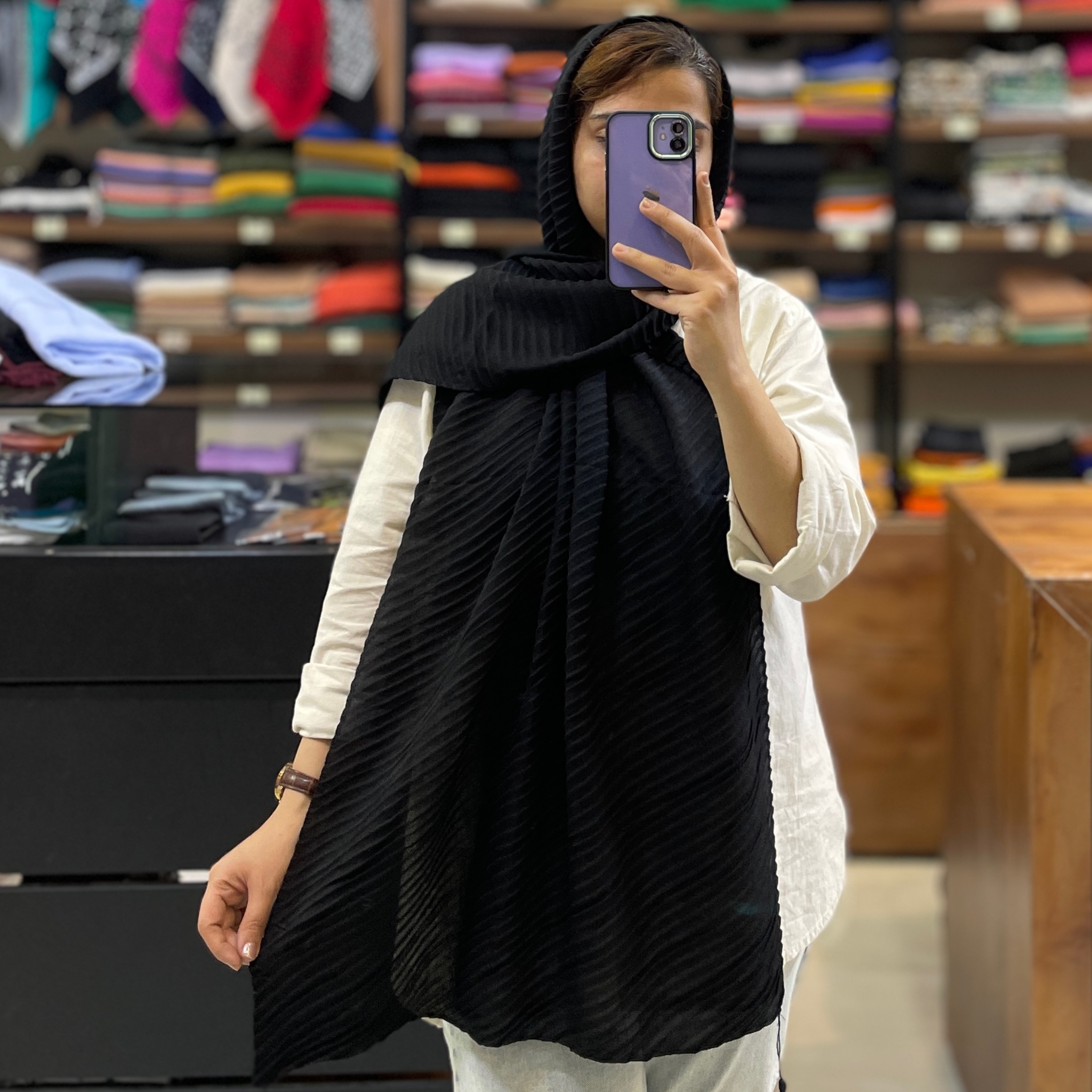 شال پلیسه مشکی کد SD-59