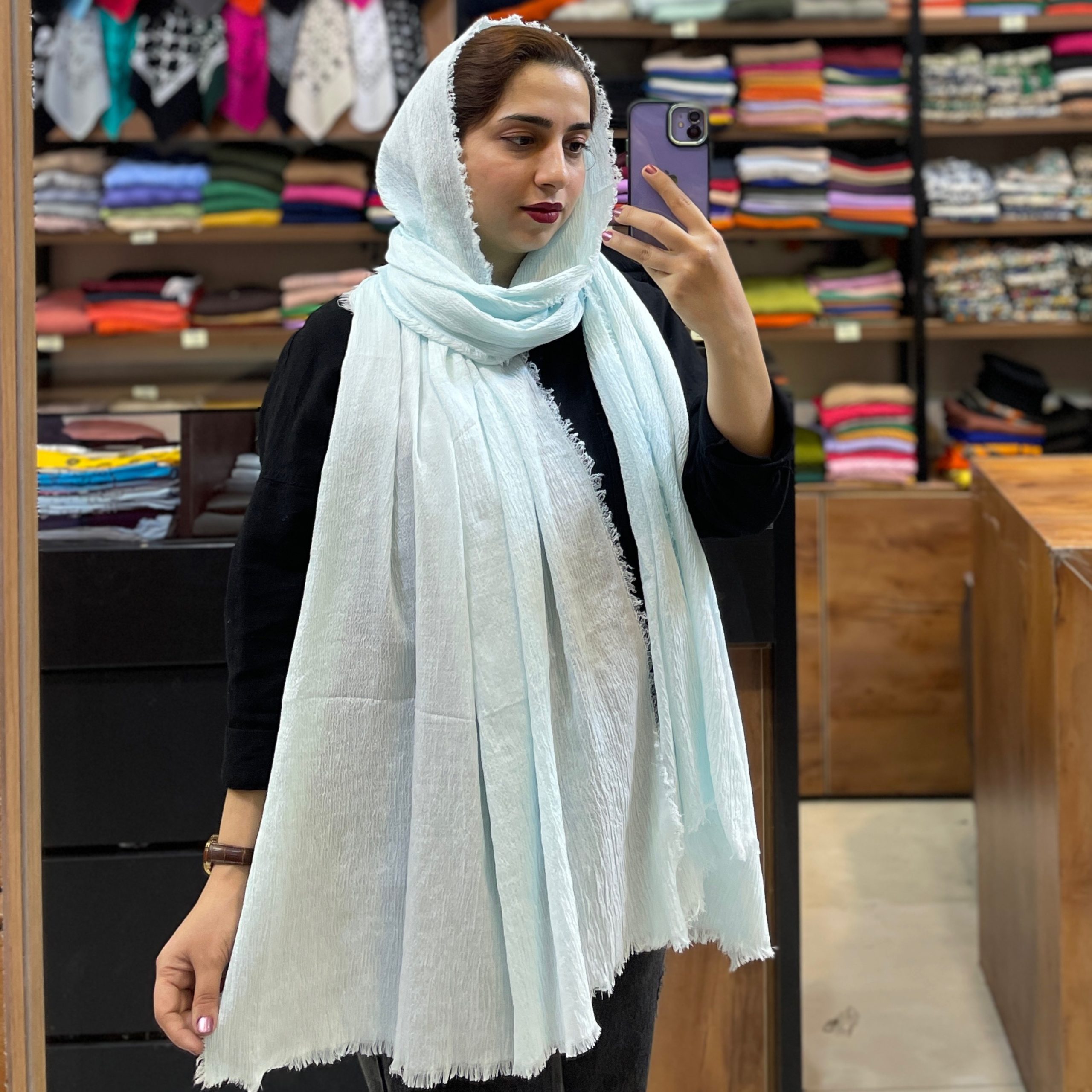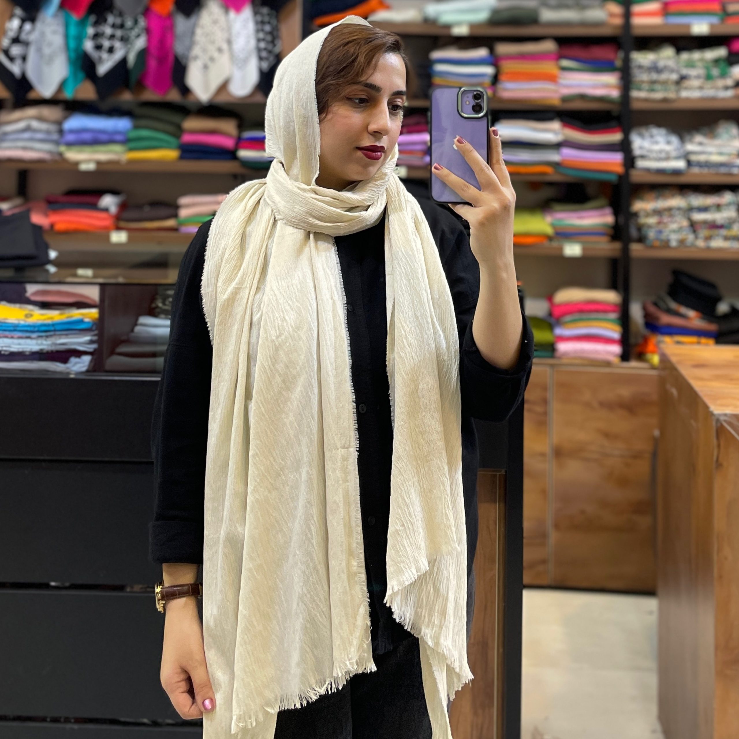 توضیحات: چهار طرف ریشه دار-ایستایی روی سر عالی-سبک و خنک-سر نمیخوره-بدون منگوله-چروک پذیری ندارد